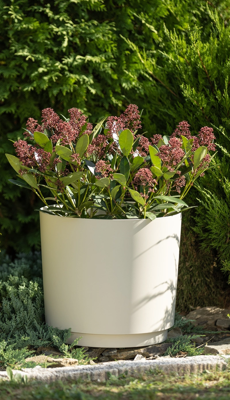 Ghiveciul AURA modern cu farfurioară este alegerea ideală pentru cei care apreciază designul minimalist și funcționalitatea practică. Forma sa cilindrică simplă și caracterul practic îl fac potrivit atât pentru interior, cât și pentru balcon sau terasă. Ghiveciul este dotat cu o farfurioară estetic integrată, care previne scurgerea apei și menține curățenia în jurul plantei. Designul modern și forma minimalistă se integrează perfect în orice tip de interior contemporan.